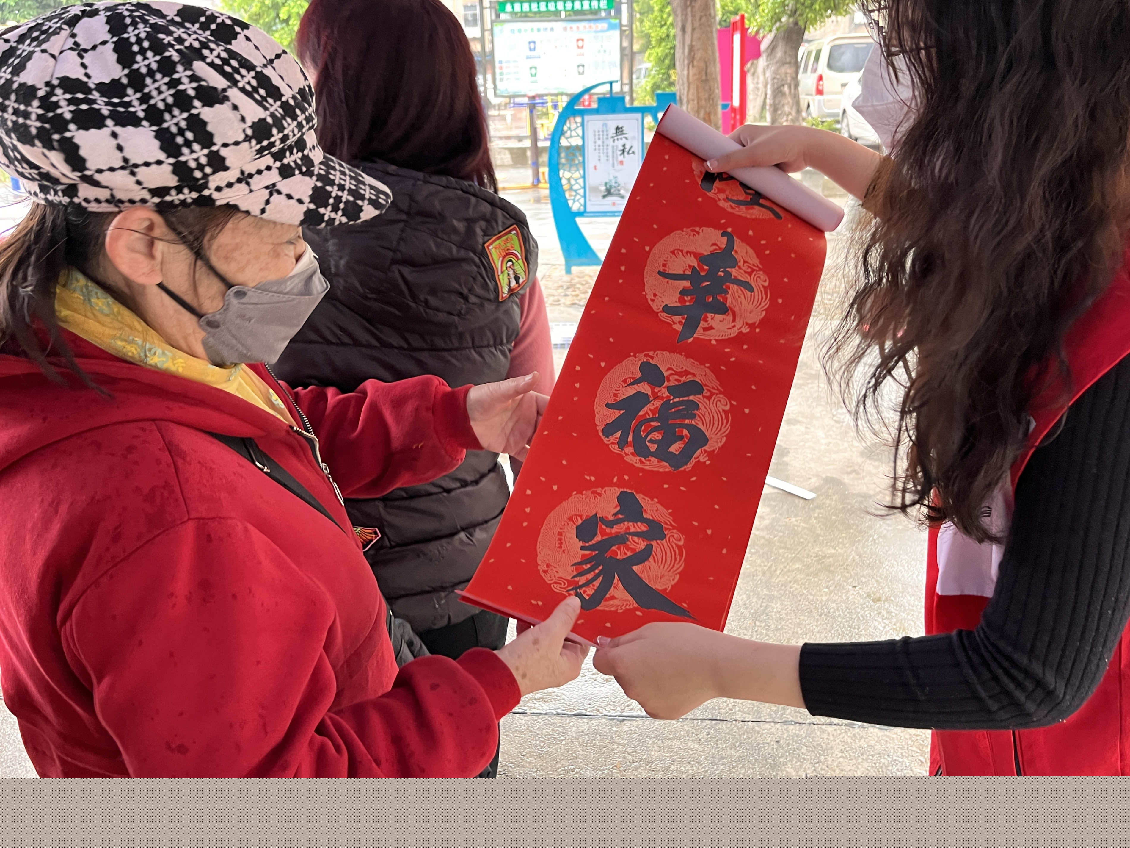 ▲市红十字会进社区慰问退休老党员并为社区居民发放福字、春联