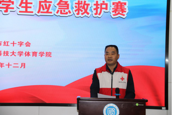 “高校是宣传传统文化、传播理想、培养精神、塑造灵魂的主要阵地,是普及群众性应急救护知识的前沿……希望各高校参赛队赛出友谊、赛出水平、赛出佳绩……”市红十字会党组成员、副会长朱政在s365 2.2.3_beat365在线体育访问不了_365平台怎么样第三届大学生应急救护赛作开幕式讲话并预祝比赛取得圆满成功。