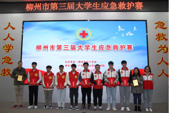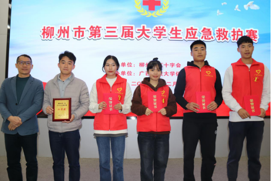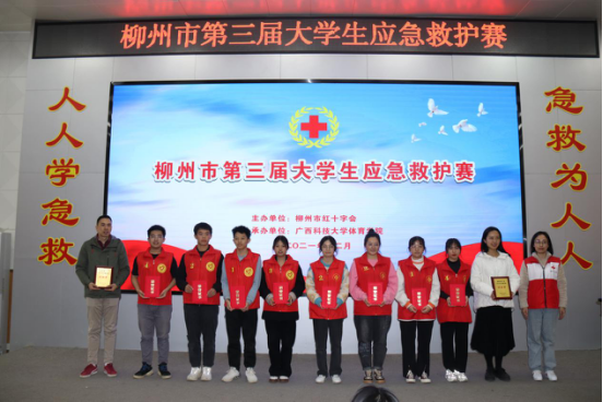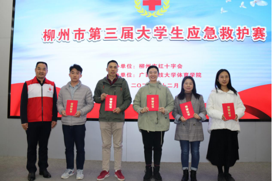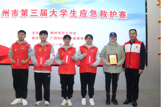赛后,评委组老师对选手们比赛时的表现进行了点评,市红十字会领导及广西科技大学体育学院领导为获奖队伍和指导老师颁发证书。