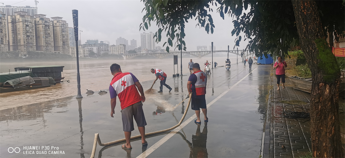 我市红十字志愿者积极参与洪涝灾害救援工作