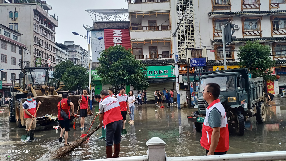 融安县、融水县红十字会也组织志愿者积极参与抗洪抢险、清淤等工作,守护人民群众生命财产安全。