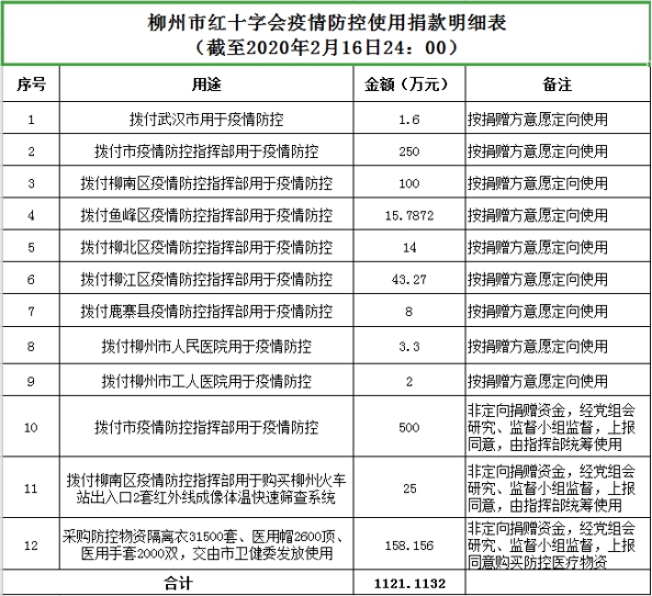 1月26日至2月16日,已使用 1121.11万元,明细如下:
