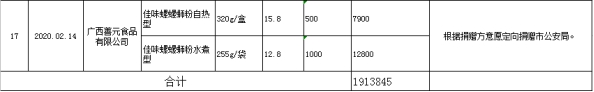 | 385 | 2020.02.12 | 广西高通食品科技有限公司 | 20000.00 | 转账捐款 | |