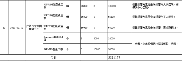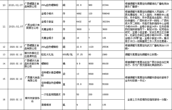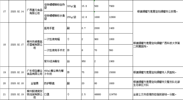 | 385 | 2020.02.12 | 广西高通食品科技有限公司 | 20000.00 | 转账捐款 | |