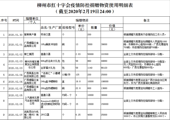 | 427 | 2020.02.17 | 柳州广电电气有限公司 | 2000.00 | 转账捐款 | |