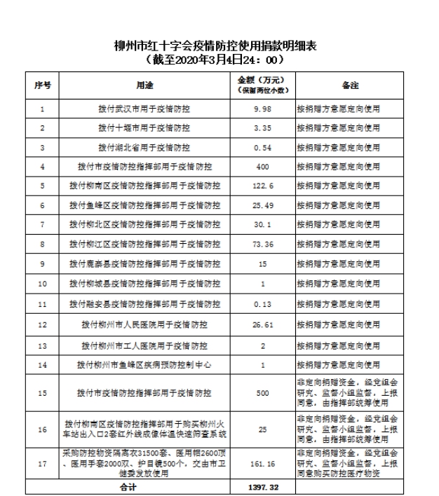 截至2020年3月4日,共接收物资总价值345.51万元,使用物资345.51万元。使用明细如下: